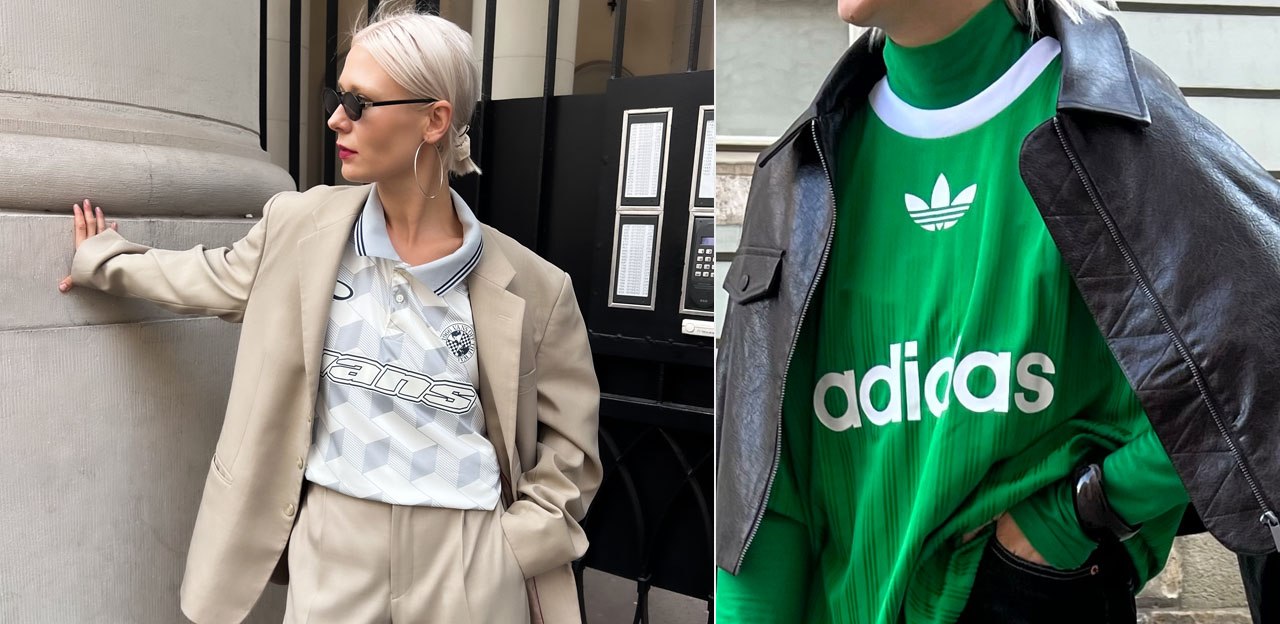 Jeśli lubisz łączyć perełki vintage ze stylem sporty, futballowe koszulki są dla Ciebie – zarówno te z krótkim rękawem i kołnierzykiem, jak i cieplejsze modele z półgolfem. Nostalgiczny efekt podkręcisz dodatkowo, dodaj do tego retro sneakersy z trzema paskami. Gazelle, SL 72 czy Samby sprawdzą się tutaj idealnie.