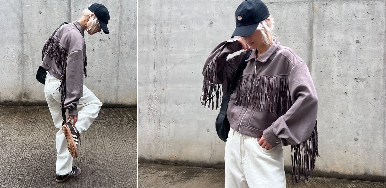 Jak widzisz, styl kowbojski w połączeniu z frędzlami to będzie to! Ale nie tylko. Jeśli stawiasz na kolejny trend, czyli jeans, on również doskonale zgra się z frędzlami. Wyszarpane brzegi, dodatkowe przeszycia wzdłuż nogawek, gdzie nitki tworzą delikatne frędzle, również będą dobrym rozwiązaniem – szczególnie w codziennych outfitach.